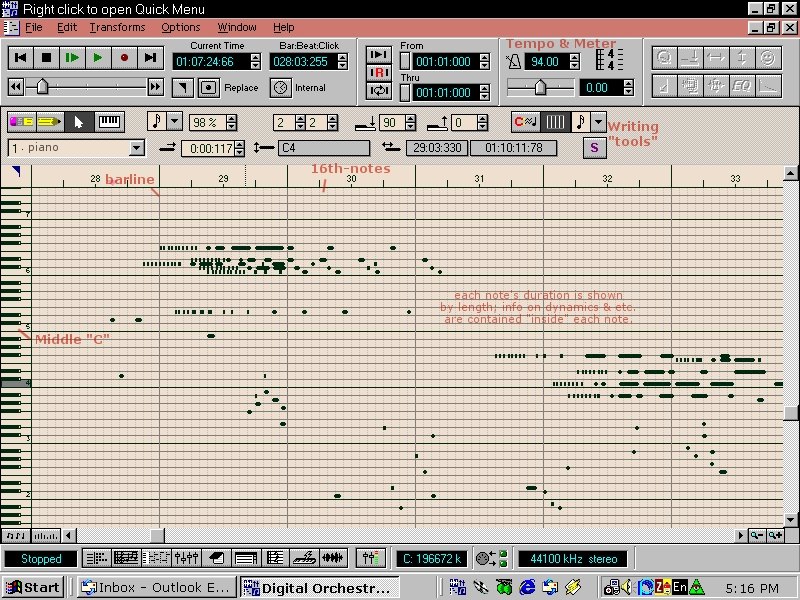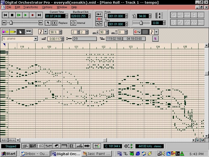 Two examples of "Evryali" taken from a MIDI "piano-roll" view of the music: